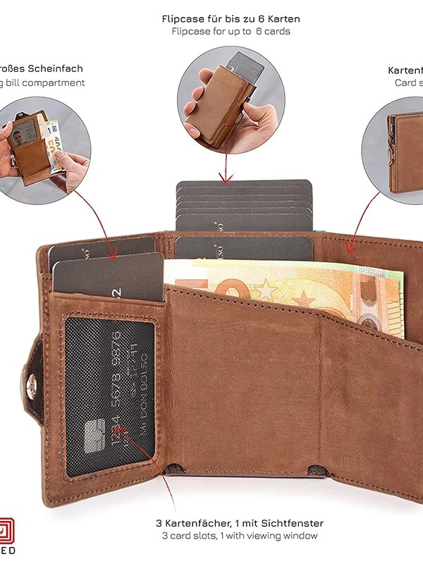 porte carte rfid de crédit Pop-Up avec Protection RFID portefeuille en cuir véritable