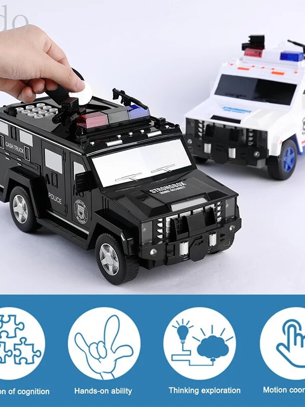 Tirelire électrique enfant camion de police – Coffre-fort secret ludique