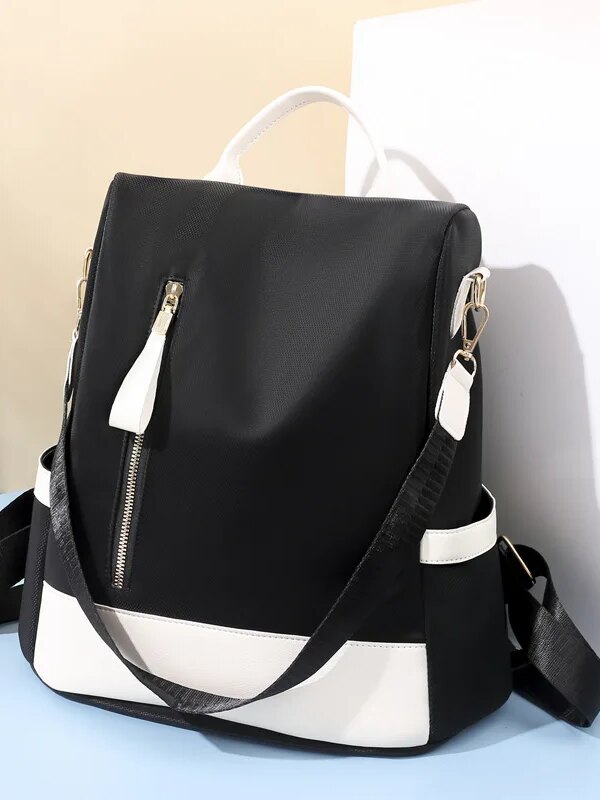 Sac antivol pour femme, sac à dos à panneaux de couleur, sacs d’école à épaule à la mode pour adolescentes