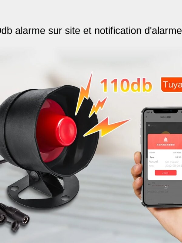 Sirène 115 dB intégrée | Volume faible, peu dissuasif |