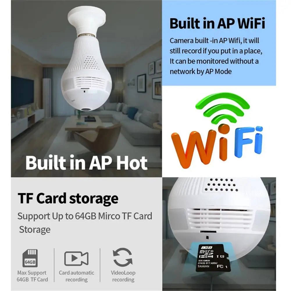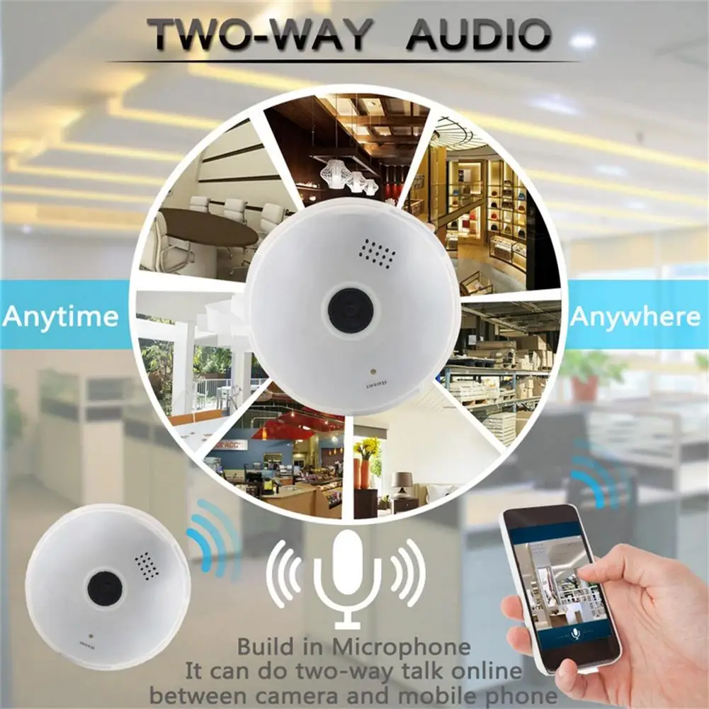 babyphone Caméra de Surveillance Cctv Ip Wifi 1080p 2.0mp H.265, lumière panoramique à 360 degrés, vidéosurveillance, Vision nocturne Fisheye