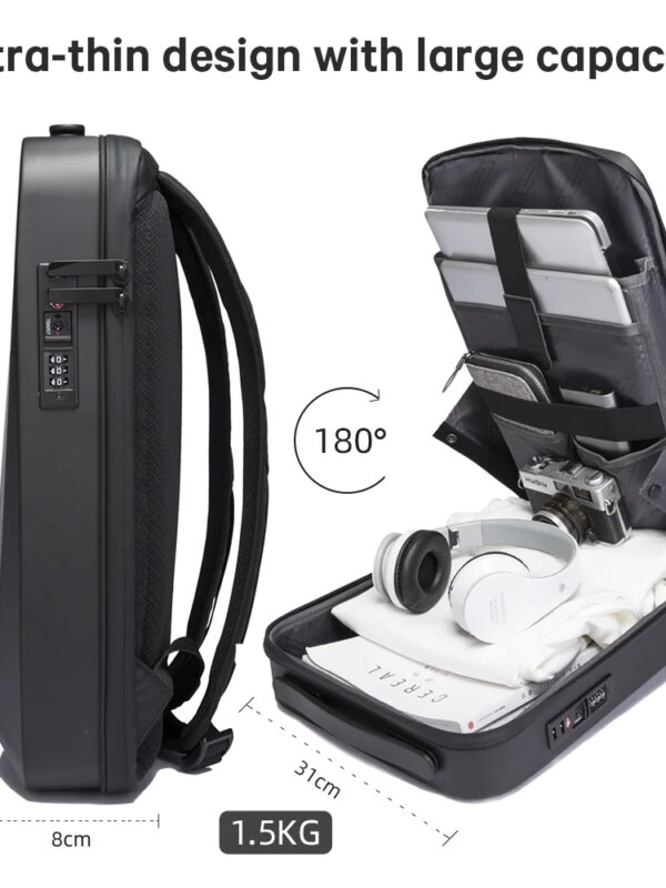 Le sac bandoulière antivol multifonction à coque dure est conçu pour les hommes modernes qui veulent protéger, transporter et recharger leurs essentiels en toute sérénité.